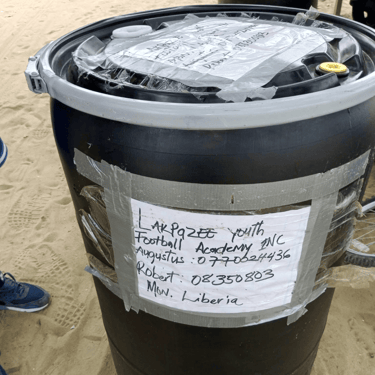 Equipment shipped for christmas distribution to the children of Lakpazee community. we are gratful that we finnaly received these barrels and a uhaul box these equipment for both under 5-17th years old teams. all appreciations to our CEO Maxwell