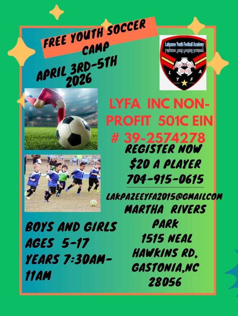 (For example: https://lakpazeeyouthsocceracademy.com/camps-registration)Complete the online form and make payment for your chosen camp session(s).